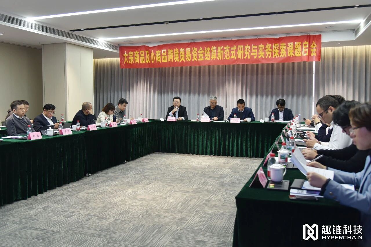 12月12日, “大宗商品及小商品跨境贸易资金结算新范式研究与实务探索”课题启动会在趣链产业园(区块链与数据要素产业园)顺利举办。本次课题由海南君顾数科研究院主导,趣链科技、清华大学五道口金融学院智慧金融研究中心、新加坡全球金融科技学院(GFI)等作为研究支持单位,共同参与课题推进。会议汇聚来自高校科研机构、数据交易所、金融机构、跨境贸易企业以及行业服务机构的多方代表,共同探讨跨境贸易金融的新路径与新范式。