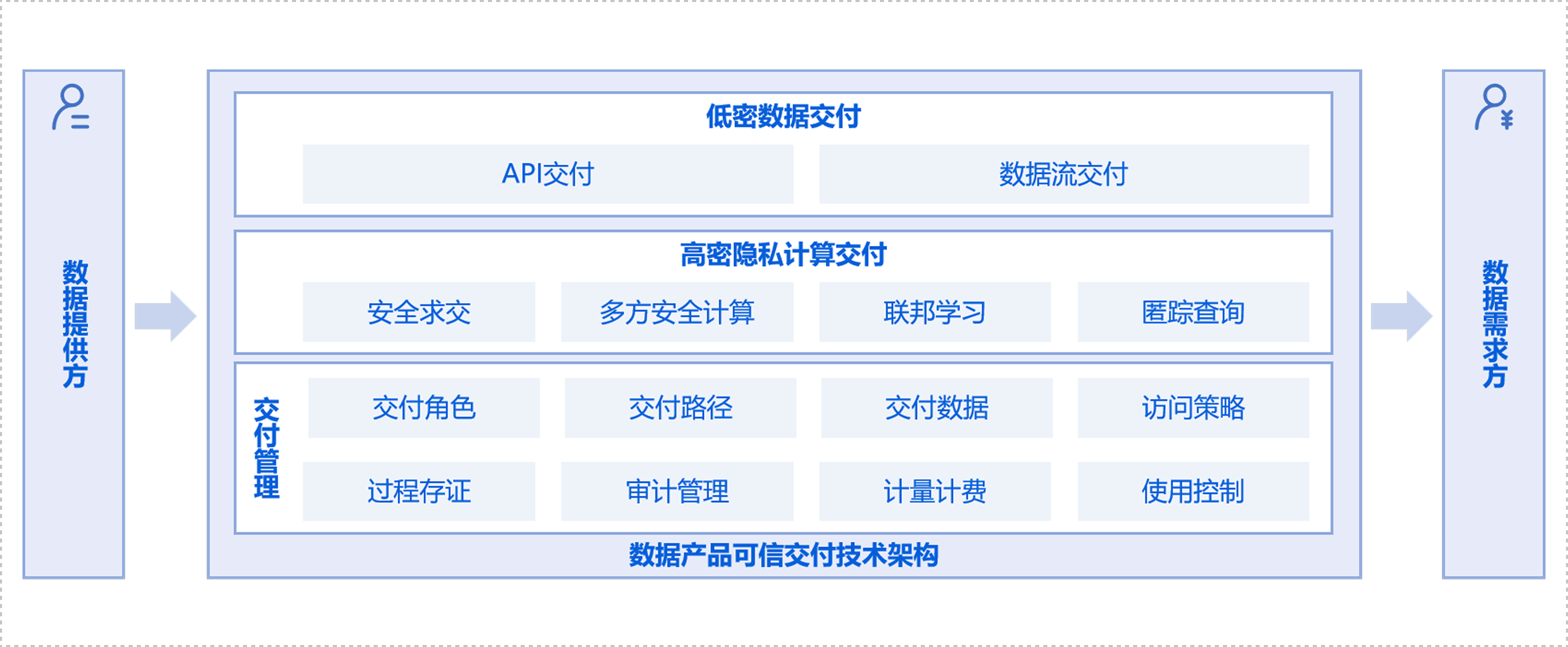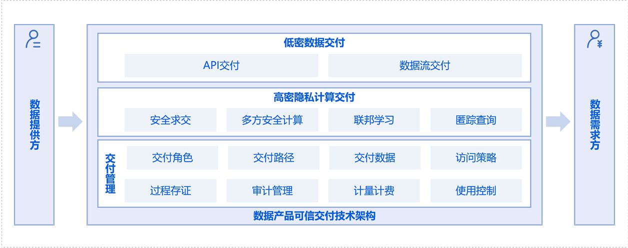 借助API数据查询和批量数据流传输两种方式,实现数据提供方与使用方之间的数据交付和获取,按照线上电子订单信息完成数据传输及交付,达成“数据可交可取”式共享。